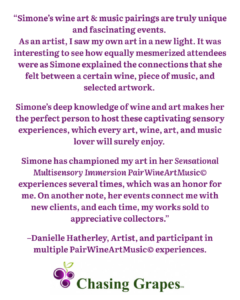 I am a Luxury Wine & Cultural Authority who uses wine, culture, aesthetics, and multisensory experience as my medium.